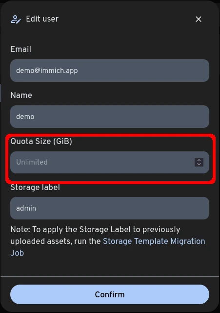 Set Storage Quota For User